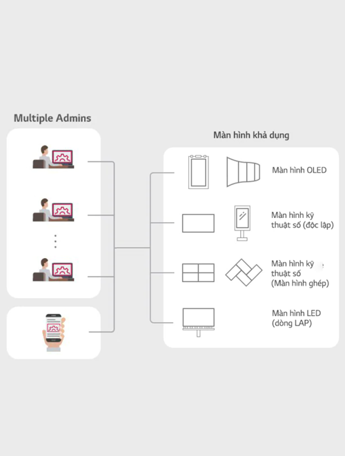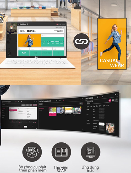 Bên cạnh các chương trình quảng cáo, màn hình LCD quảng cáo còn hỗ trợ việc tạo chương trình và phát hành sàng lọc nhiệt độ, kiểm soát dòng chảy, tham dự của nhân viên và hơn thế nữa